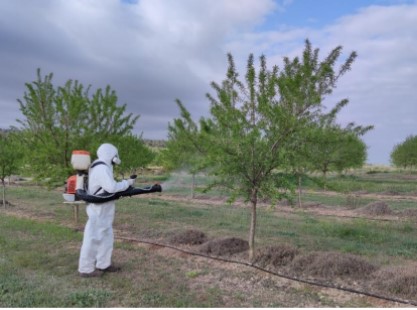 Cultivo: Prunus dulcis (Almendro) de la variedad “PENTA” sobre patrón “INRA GF-677” procedente de viveros comerciales, plantada en primavera del 2017. El manejo de la parcela experimental (riego, fertilización, control de plagas y malas hierbas) se realizó cumpliendo las normas de Producción Integrada de (Resolución ARP/1883/2018). El marco de plantación era de 5m x 6m y el sistema de formación utilizado era el vaso clásico. El ensayo se basó en la realización de una aplicación del producto LABIN ENERGY GROW a tres dosis distintas (3, 5 y 10 L/ha). Estos tres tratamientos se compararon con un TESTIGO sin aplicaciones. Durante el periodo del estudio no se aplicó ningún otro tipo de fitofortificante, fitoregulador, bioestimulante o nutriente.